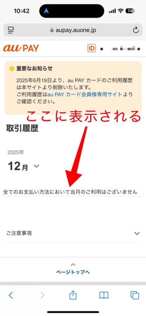 - au PAY(auかんたん決済)の利用料金は別のページからも確認できる