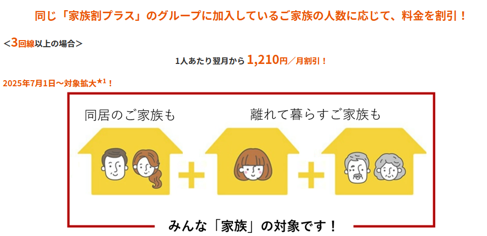 家族割プラス (3人以上)※1 | -1,210円 | -1,210円 |