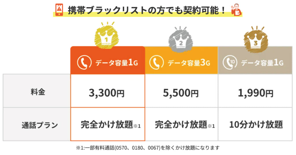 そんな中で見つかるのが、審査不要をうたう「だれでもモバイル」。