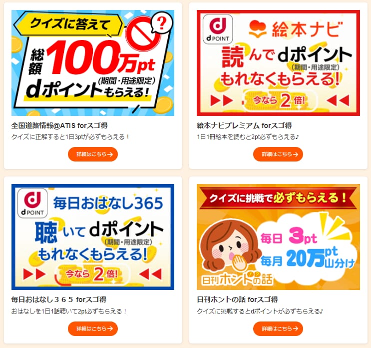 上記画像のような感じで、サイトにアクセスしてdポイントがもらえるコンテンツがあります。