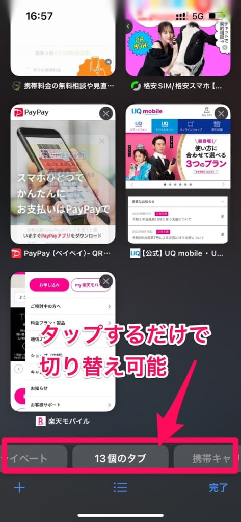 今までSafariのグループを切り替えるためには「グループ一覧」をタップしてから、切り替えたいグループに切り替える方法しかありませんでした。