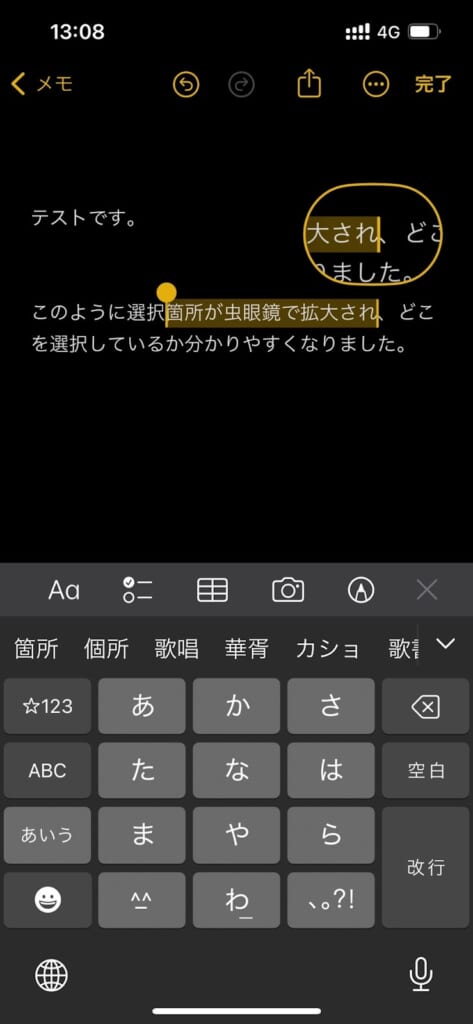 範囲選択する際に虫メガネで拡大されるように選択場所が分かりやすく
