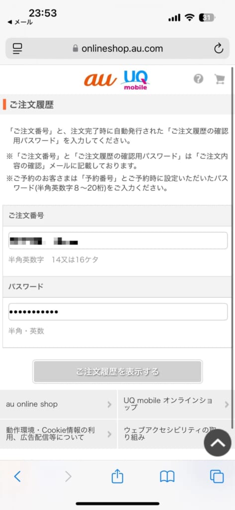 ※注文番号は、予約完了メール(「au予約申込完了のお知らせ 」)に記載されています。