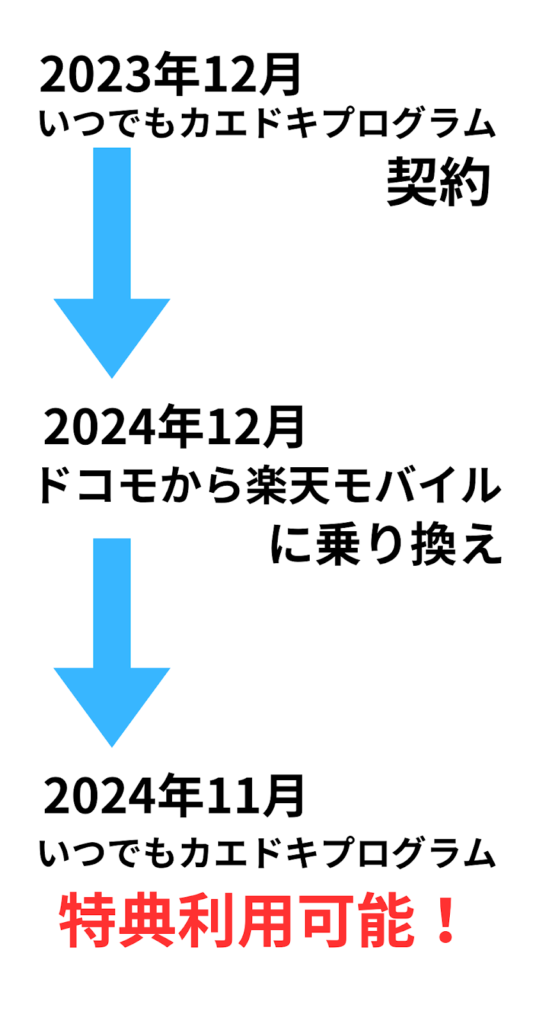 いつでもカエドキプログラムを契約中に、ドコモから他社に乗り換えた場合でも、いつでもカエドキプログラムの特典は利用可能です。