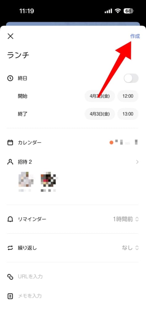 自分の予定を共有しておきたい場合は、招待を自分のみに設定することで「共有カレンダー」として作成・共有できます。ただし、自分以外にはリマインダー通知は届きません。