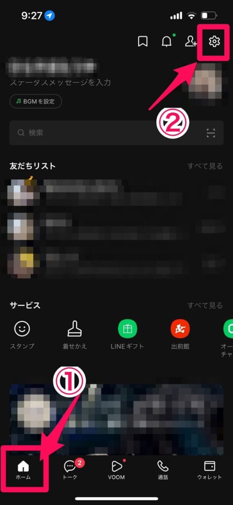 LINEの設定画面はLINEホーム右上の歯車マークから開くことができます。