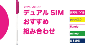 2つのSIMカードを組み合わせることで、楽天モバイルが繋がらない場所では「mineo」や「povo」などに切り替えて使うことができます。
